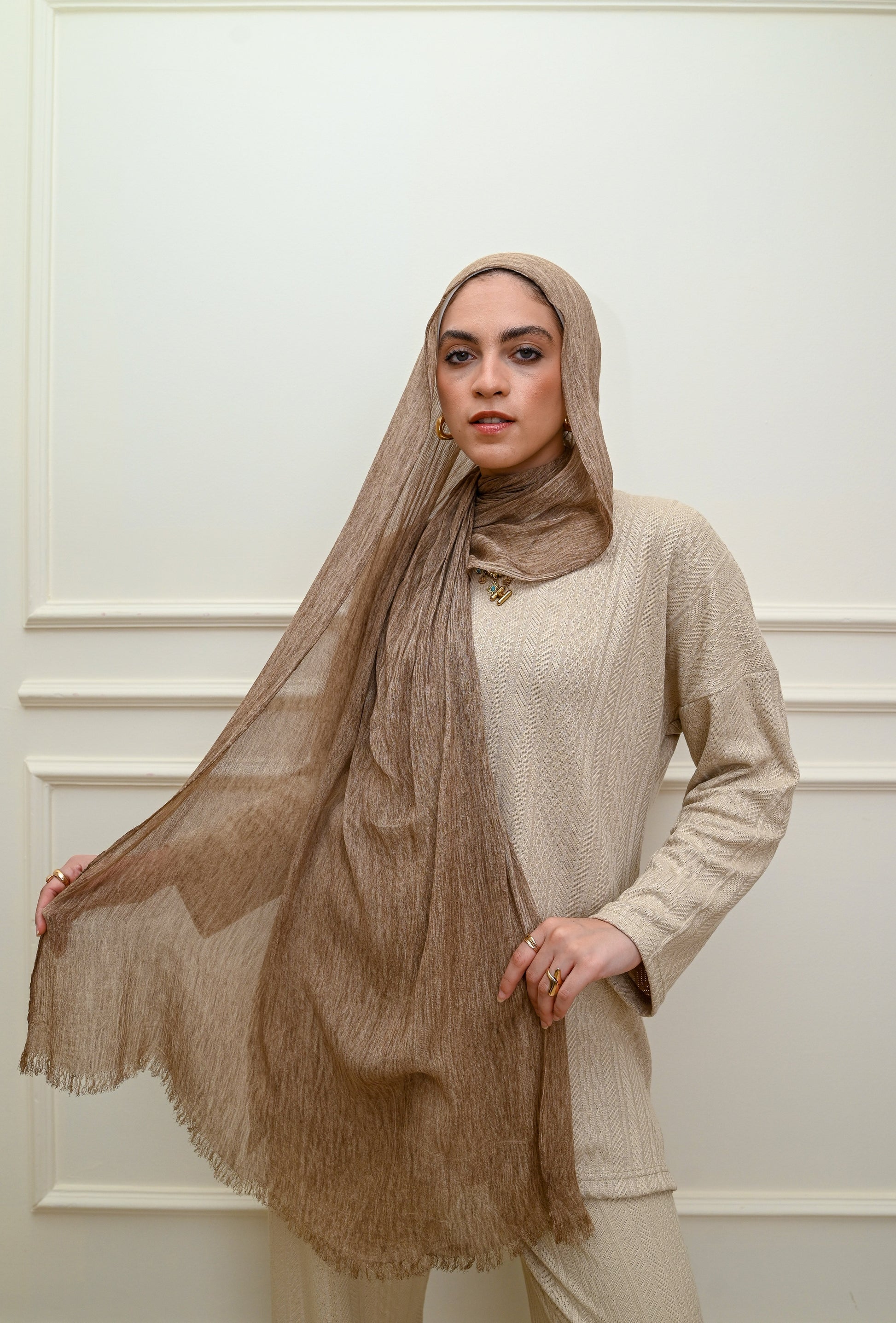 Add natural texture to your everyday look with this breathable crinkled linen scarf , Its generous size allows for versatile styling as a wrap or shawl.